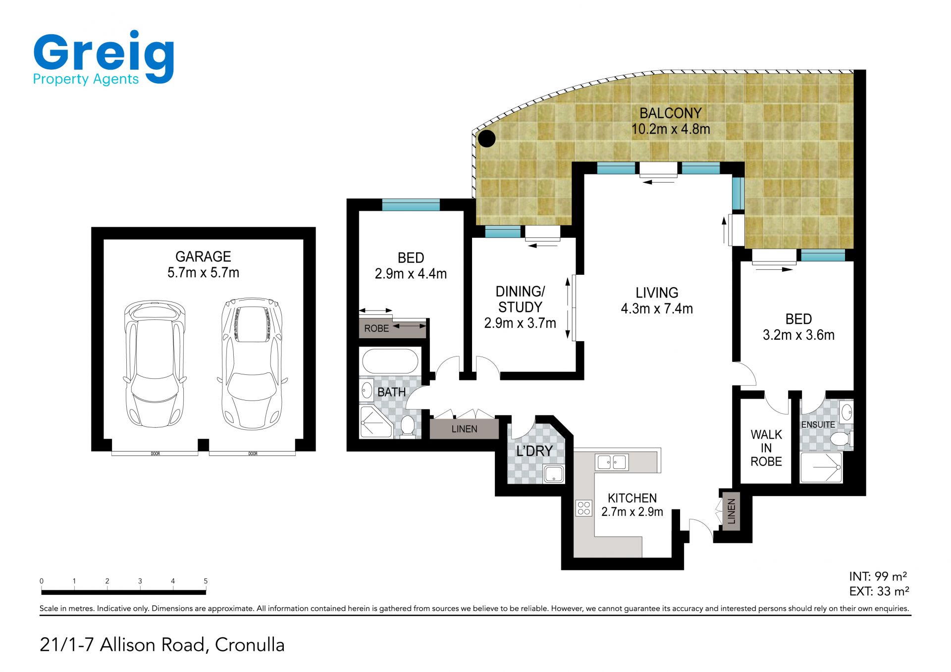 Two-bedroom, two bathroom unit, master with ensuite and walk in robe