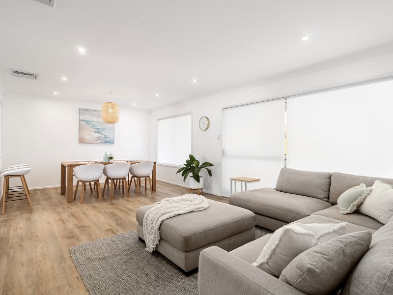 Tucked in a quiet pocket of Sylvania Waters is this delightful family home. With its beautifully renovated interior, this home includes an oversized family kitchen with stainless steel appliances and stone benchtops, featuring a lovely sunroom on one side and a spacious open plan lounge dining on the other, making it easy to entertain family and friends. Three double bedrooms and modern family bathroom complete the first floor offering a lovely blend of comfort and style. Downstairs offers a sizeable entry foyer, separate private study, a third full bathroom and huge flexible living space that can be used as a rumpus or fourth bedroom allowing for family fun or in-law accommodation. Outside features a lovely undercover pergola, sunny inground pool and grassy rear garden to start your summer entertaining immediately.